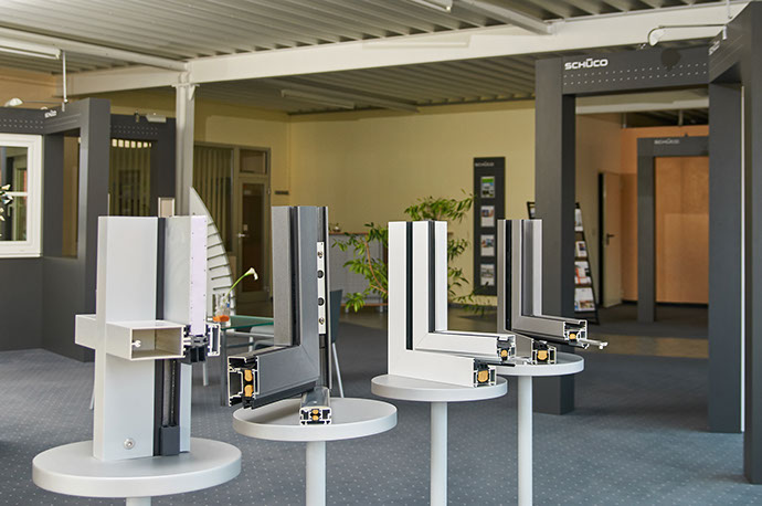 Die Herstellung von Fenstern und Türelementen aus Schüco-Profilen beginnt und wird zum Hauptgeschäft der noch recht kleinen Firma.